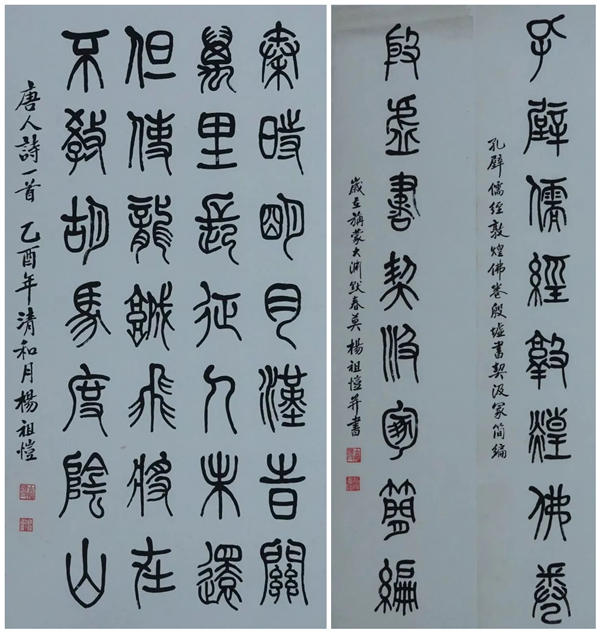 杨祖恺先生(1915-2010),出生于贵州遵义杨柳街,精于隶篆,省内名胜古迹均有墨迹存世。1980年后参加地方史志编纂、古籍整理等工作,曾任贵州地方志编委会特约编纂、贵州历史文献研究会理事、贵州省业余书画学校书法教师等职,1985年受聘省文史馆馆员。出版有诗词联文合集《将就斋杂稿》,遗著有《且闿遗稿》。