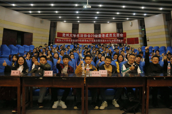 2020年10月23日晚,由贵州大学团委指导、挂靠贵州大学中国文化书院的学生传统文化社团——贵州大学书法协会在西区西楼报告厅举行第十六届换届交接及新生见面交流会。书法协会老会员齐聚一堂,回顾过往并展望未来。2020级新生加入社团,一股新鲜的气息扑面而来。
