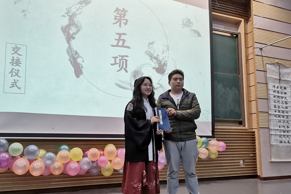 新任会长陈厚娟代表新一届书协骨干发言,表示将秉持书协的宗旨,传承协会的优良传统,争取再创更大辉煌。在陈厚娟的带领下,新一届社团的其他负责人一并登台,与全体成员见面并完成工作交接。