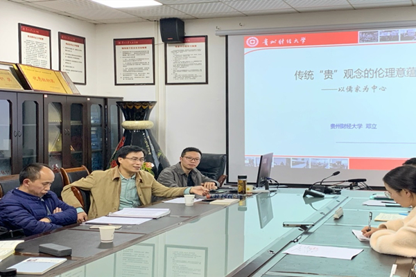 2020年10月16日星期五晚,由贵州大学哲学与社会发展学院伦理学硕士点主办的“书路清源”第二十期学术与文化邀请讲座,在贵州大学北校区人文楼217会议室成功举办,讲座主题为:传统“贵”观念的伦理意蕴——以儒家为中心。本次讲座我们有幸邀请到了贵州财经大学文法学院的邓立老师。参与本次讲座的还有贵州大学邓国元老师、宋君修老师,以及贵州大学哲学与社会发展学院20余名研究生。讲座由贵州大学哲学与社会发展学院伦理学硕士点负责人宋君修老师主持。