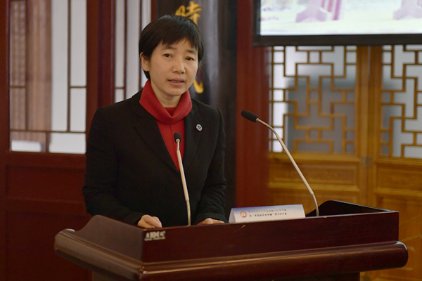 贵州省翻译工作者协会会长、我校外国语学院院长周杰致辞。她介绍了贵州省翻译工作者协会一年来的工作情况和成果。她表示,本次会议为我省翻译学者提供了研讨交流的平台,希望能推动我省典籍翻译与传播的新发展,助推贵州翻译实践水平的提升、翻译研究的繁荣。