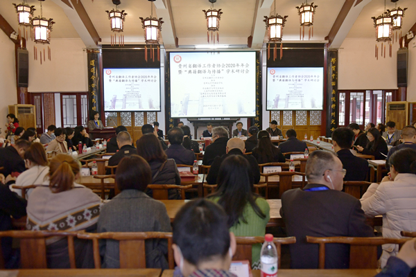 贵大新闻网讯10月31日上午,贵州省翻译工作者协会2020年年会暨“典籍翻译与传播”学术研讨会在我校中国文化书院召开。贵州大学副校长邓朝勇出席会议,省翻译工作者协会、省大学外语教学研究会和省外语学会,以及贵州大学、贵州民族大学、贵州医科大学、贵州中医药大学等学校相关负责人参加会议。