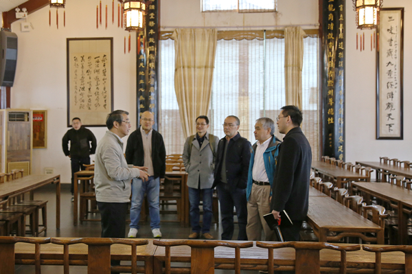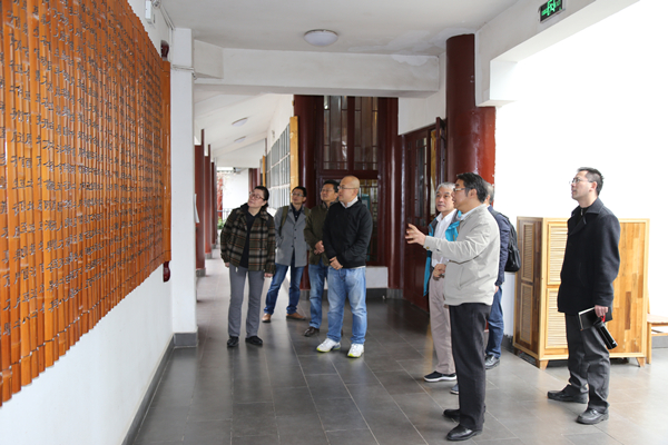 在书院内,专家组客人听取有关贵州大学中国文化书院创院荣誉院长张新民教授创建书院并为书院文化建设及学术引领所作出杰出贡献、所亲撰中国文化书院《学规》、《条规》表达的学问与人生统一、知识与人格统一、理论与实践统一学术理念,以及提倡净化人心、端正世风、变奢为俭行为规范内涵解说;了解中国国家图书馆原馆长任继愈先生、在台孔子第七十七代嫡传后人孔德成先生等文化名人专为书院题写院名及其所寄予的传统文化传承与创新厚望。