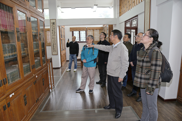 在励道楼书院研究人员成果陈列室,专家组详细了解书院暨基地创办国内首个以王阳明先生名字命名的大型连续学术辑刊《阳明学刊》及《人文世界》的编辑出版情况,了解专兼职人员在中华优秀传统文化特别是儒学与阳明学、贵州地域文化特别是清水江文书学的研究情况;在涵远读书楼的丰富典藏前,专家组客人了解《乾隆大藏经》《四库全书》《天柱文书》《黎平文书》《锦屏文书》等中华传统文化典籍及贵州清水江文书收藏与整理、利用与研究情况。