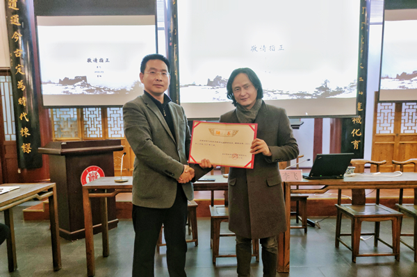 在热烈的掌声中,报告结束。现场师生就海龙囤的相关问题进行探讨和请教,李飞馆长做了详细的讲解,气氛十分活跃。黄诚教授向李飞馆长颁发“东方思想与文化遗产研究中心”兼职研究员聘书并对本次讲座作了总结。他表示,李飞馆长的报告有三个特点:一是以历史时间为线索,通过考古发掘与文献资料的互证对海龙囤的变迁进行了深入剖析;二是以战争史的视野,阐述了海龙囤为什么是“无城之城”及其性质的演变;三是从考古的角度,通过完整而丰厚的考古报告为今后的相关文化遗产研究提供了直观和科学的考古资料与学术依据。