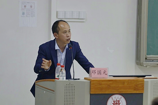 讲座内容围绕王阳明“心即理”“亲民”“心外无物”展开。邓国元基于“是什么”“为什么”“怎么样”的三重视角,对阳明三方面的哲学思想作了基源性追问,揭示并阐发其哲学上的理论本质与普遍意义。
