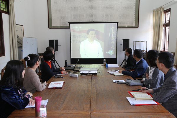 在交流中,党员同志及老师们回顾在“5•9重要讲话”中关于不仅要学国学、更要学习马克思主义、学习中国特色社会主义理论精神激励下,书院近10年来延续百年文脉、建设精神家园,研究中华文化、继承优良传统,弘扬中华文化、传播民族精神特别是在中华优秀传统文化方面的科研与学术积累。表示,将在系列重要讲话精神指引和带动下,将传承与弘扬中华文化与党的“不忘初心、牢记使命”不懈奋斗历史精神相结合,在学校“学党史 感党恩 听党话 爱祖国 强贵大”学习教育活动及书院学术研究、文化传承、素质教育三大功能发挥中不断接续前行,在构建中国特色、中国风格、中国气派的学科学术与文化发展中,切实落实立德树人根本任务,为党育人、为国育才。