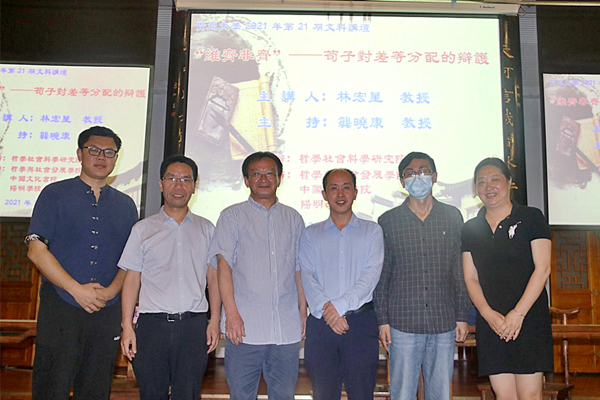 本次讲坛的主题为“‘维齐非齐’——荀子对差等分配的辩护”,由复旦大学中国哲学史、中国伦理思想史专业博士生导师林宏星教授主讲。贵州大学哲学与社会发展学院龚晓康教授主持,哲学与社会发展学院、中国文化书院、体育学院部分师生参加了本次讲坛。