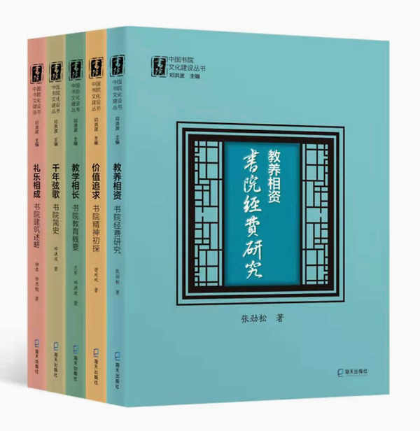 这套书分为5种,即:《千年弦歌:书院简史》(邓洪波著)、《教学相长:书院教育概要》(兰军、邓洪波著)、《教养相资:书院经费研究》(张劲松著)、《礼乐相成:书院建筑述略》(柳肃、柳思勉著)、《价值追求:书院精神初探》(曾欢欢著),专一而论,自成体系,相得益彰,提供借鉴。