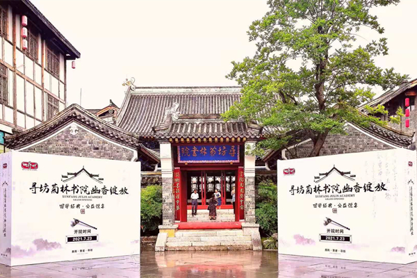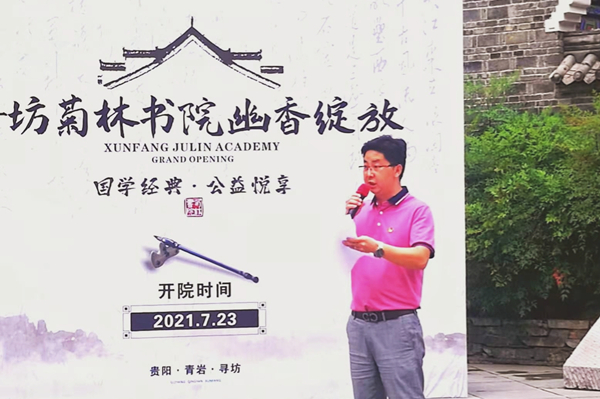 7月23日,“寻坊·菊林书院”在青岩举行揭牌仪式。贵州省委宣传部原副部长、省文明办原主任、贵州省雷锋精神研究会会长翟荣凯,贵州大学中国文化书院院长张清、贵阳花溪区关工委副主任刘开英、贵州省诗人协会主席郭思思、上海张大千大风堂艺术中心贵州书画家联谊会副秘书长蒋晓林、贵州铁路书协主席黄绍基、贵阳画院常务副院长查晓,贵阳青岩镇政府武装部部长、副镇长何芳,贵阳花溪区菊林书院院长饶昌东,贵州虹祥房地产开发有限公司党总支书记、董事长陈云鹏和党总支副书记、副总经理张羽露等出席。