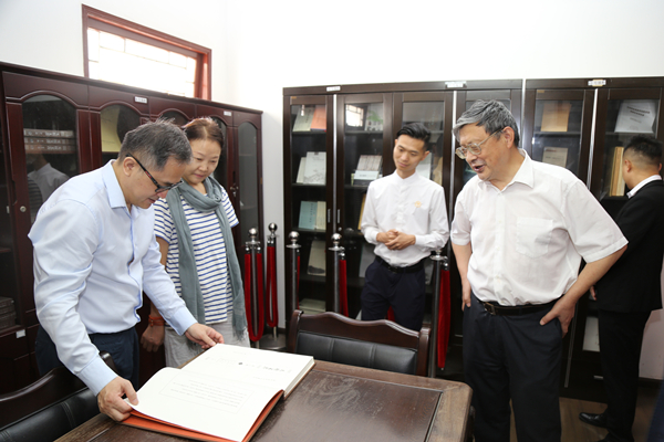 参观涵远读书楼时,客人一行对书楼《永乐大典》、《四库全书》、《万有文库》、《乾隆大藏经》等历史文化典籍的编撰、收藏和利用表示赞叹。在崇德室,众人共同观赏由孔德成先生专为中国文化书院所撰并书写的“崇易尚儒自由颂 有教无类民主风”楹联,感受崇德、崇物、崇易三位一体合成,判天地之美、析万物之理、察生命之全、适本来之性、自由即在其中、道亦在其中的至高自由理想境界。