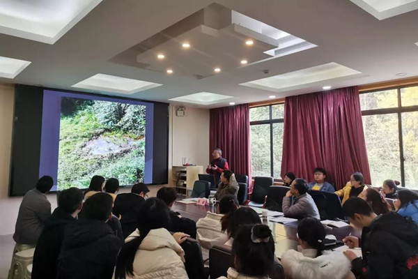 随后,赵平略教授详细阐述了王阳明“龙场悟道”的艰苦经历及其原因,栩栩如生、引人入胜,尤其是论及王阳明抵达龙场驿后面临无房、缺粮、患病、无药的艰苦境遇引起了现场学生们的共鸣,深感王阳明当时的艰辛;话锋一转,赵平略教授开始分析王阳明何以战胜困难的原因,从王阳明在贵州修文所作的诗文作品中看到了他积极乐观与开阔豁达的精神面貌,看到了他与当地百姓的和睦共处与互帮互助,看到了他在艰苦环境中对经典与圣人之道的反思与开掘。在天时地利人和的综合条件下,产生了思想史上王阳明“龙场悟道”的伟大事件。