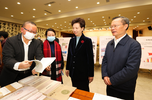 谌贻琴在孔学堂阳明馆详细了解阳明文化研究与传播工作推进情况。杜朋城摄