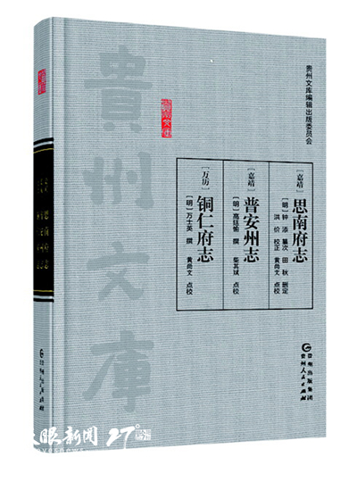 首批10种53册《贵州文库》首发于2017年底。包括精装点校本:《碧山堂诗钞》《贵州苗夷社会研究》《花溪闲笔·贵州民政十讲》《[嘉靖]思南府志·[嘉靖]普安州志·[万历]铜仁府志》7种4册;线装影印本:《大定府志》《蟫香馆使黔日记》《莫批施注苏诗》3种49册。