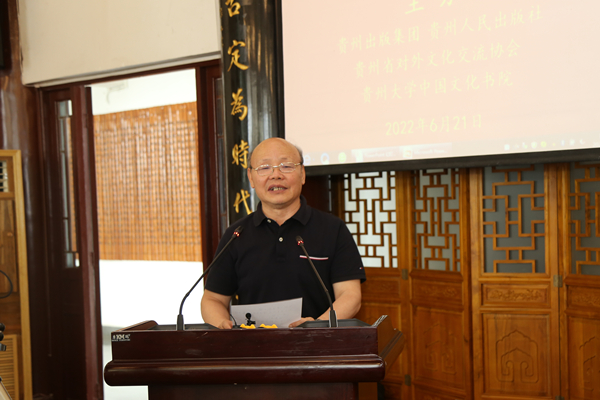 贵州省图书馆、贵州省博物馆、贵州大学图书馆、贵州师范大学图书馆、贵州民族大学图书馆、贵州大学中国文化书院、贵州大学文学与传媒学院等图书受赠单位负责人接受赠书。贵州大学文学与传媒学院院长谭德兴代表受赠单位致辞。