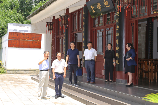 在贵州大学中国文化书院,调研组考察书院内外文化环境,听取有关中国文化书院同时作为贵州省高等学校人文社科重点研究基地、人文社科示范基地、优秀校园文化育人基地——贵州大学中华传统文化与贵州地域文化研究中心、大学生传统文化爱国主义教育基地的学术研究、文化传承、素质教育工作开展情况汇报。
