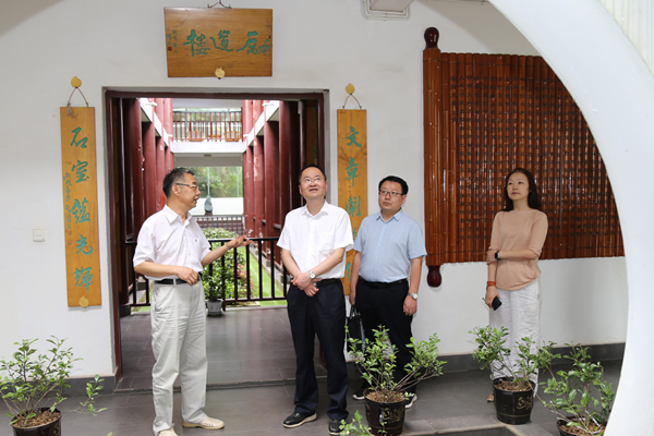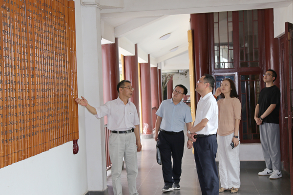 2022年7月12日下午,赣南师范大学副校长吴磊率赣南师范大学教务处处长李勋在贵州大学校长办公室人员陪同下考察贵州大学中国文化书院(阳明文化研究院)。中国文化书院负责人欢迎吴磊副校长等客人到来,介绍中国文化书院的学术研究、文化传承、素质教育等情况并就书院文化、阳明文化在两校的发展进行交流。