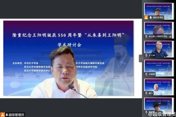 2022年7月18-19日,由中华孔子学会、中华孔子学会陆九渊研究委员会、武汉大学中国传统文化研究中心、中国阳明文化研究园龙岗书院、武汉大学阳明学研究中心主办的“隆重纪念王阳明诞辰550周年暨‘从朱熹到王阳明’”学术研讨会”以线上会议形式举行。