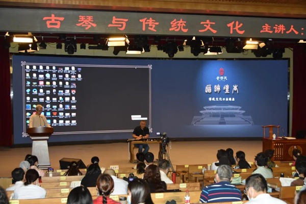 讲座开始前,主持人对朱晞先生作了隆重介绍,指出朱先生不仅古琴造诣精湛、教育贡献卓著,且身兼数艺,诗词书画修养不亚于其音乐成就,堪称中国古典文人琴棋书画样样兼通的模范。以深厚广博的学养作为立身之资,朱先生对传统文化的体证和领悟非常值得学习。