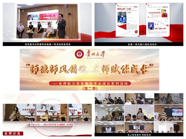 活动首先回顾了贵州大学“师德师风铸魂 名师赋能成长”——名师助力青年教师专业成长系列活动(第一季)视频。系列活动由校党委教师工作部主办,旨在通过榜样引领、教学示范,情景体验、实验互动等形式,激发教师师德涵养的内生动力,助力青年教师专业成长。自去年推出第一季活动,立刻成为学校教师喜爱和信赖的师德建设品牌,线上线下参与教师达到2万多人次。第二季将继续开展金师论坛,名师沙龙和专家教学问诊等活动。