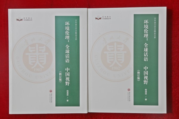 贵州大学哲学系校友、广西大学马克思主义学院杨通进教授所著《环境伦理:全球话语中国视野》(修订版)由贵州大学出版社2022年8月出版发行,纳入《百年贵大文化建设丛书》“百年贵大学术精品文库”并由“百年贵大文化传承工程项目资助”。“第六届湖广中哲论坛——中国哲学的传统及其现代化”2023年5月12-14日在贵州大学中国文化书院、哲学院召开之际,中国文化书院获作者特意赠书。