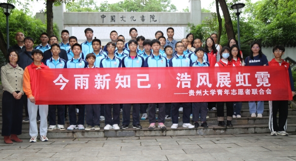 今雨新知己,浩风展虹霓。专程到校进行参观学习的新雨学校师生还将在贵州大学团委的统一安排组织下,由校志愿者联合会学长带领参观贵州大学校史馆及学校其他教学区域,通过参观大学校园以增强中学同学们的学习动力,让同学们的学习与进步更具方向性与目标性。