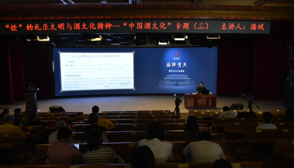 第六部分,潘教授讲述“饮”的礼乐世界,引出酒与礼的本质关联。认为:其一,因酒成礼,礼随酒兴。酒礼一体式古代尊崇饮酒的根源,以酒为中心的行为本质上是礼乐生活,是礼仪教化的现实展开;其二,以饮为礼,酒礼有序。饮酒的主体差异决定了饮酒行为的社会意义。与谁饮酒:“独饮得神,对饮得趣,众饮得慧”;其三,群贤会饮,同心共济。饮酒不仅是饮食活动的基本形式,也是公共交往的主要方式,亦是生活文明的表现形式。酒文化传承至今而历久弥新,虽只是浩瀚广大的中华文化中的一个支流,但以“饮酒”为中心的日常活动构成了极为平凡却至关重要的现实生活世界,是中华礼乐文化的现实地基与意义之源。就社会建设而言,理性成熟的饮酒方式能有效释放社会压力,拓展公共交往的路径,是创造美好生活的重要内容。