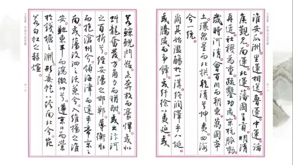 在山水文化空间的知识游览中,王老师用深厚的文献考据知识,以他自己所作、孙晓云所书《中国大运河赋》之雄健宏泽大赋创作实践为例,给听众展示了中国人文精神凭兹山水而建构华夏文明、公共礼仪、家族伦理、人文精神、民族情感、生命气概、价值信仰的历史脉络以及深远而绵长的生命体验。“高山仰止,景行行止”;“理一分殊,月映万川”。山水,是中国诗人叙写天地四时瞬息变化、自然万物死生消长之生命智慧与文学之思的重要寓意主体。他强调,山水在中国文学、绘画、伦理与思想史上具有重要意义,指出中国山水具有自然之美、人文之美。中国山水文化,是中华民族崇尚自然、德性智慧与天人合一观念的精粹呈现。