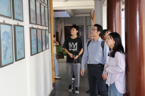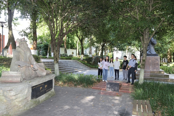 在书院正门前,师生参观由香港孔教学院院长汤恩佳博士馈赠中国文化书院的孔子铜像,共同体会孔子铜像所传达的仁爱与和谐的精神;在手捧简牍读书的尹珍塑像前,了解东汉时期尹珍先生对贵州文化教育、贵州汉文化和西南汉文化教育所做出的开创性贡献;在“贵山书院”碑刻前,了解到贵州大学自前身“贵山书院”1902年改制为“贵州大学堂”以来,历经“省立贵州大学”“国立贵州大学”至今120多年的发展演变及贵州大学中国文化书院对中华传统书院的文化传承。