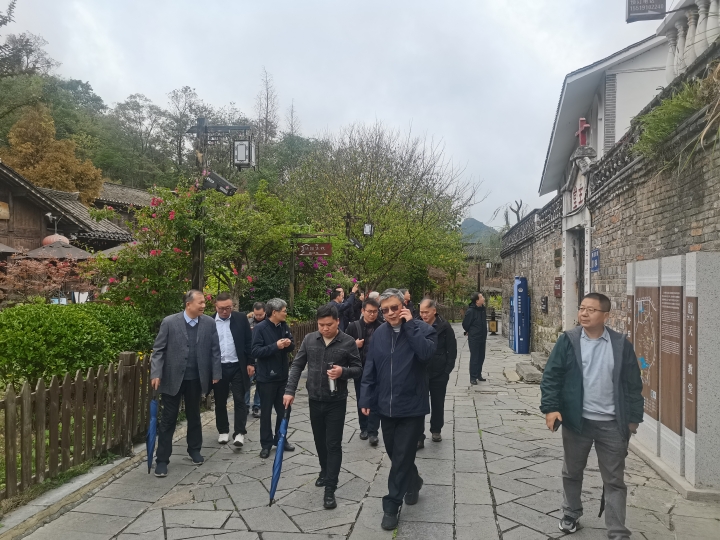 嘉宾一行参观考察古镇文昌阁、云贵首个状元赵以炯故居,在明清古街道参观万寿宫、张公馆、原国家领导人父母曾居地、天主教堂、基督教堂等文化遗存及纪念地,登临定广门俯瞰古驿道及美丽的定广湖景色,感受青岩古镇的丰富文化内涵。