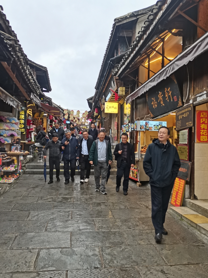 2023年11月12日上午,出席由贵州大学、江苏宏德文化出版基金会主办,贵州大学历史与民族文化学院、贵州大学中国文化书院、贵州大学国家民委中华民族共同体研究基地西南民族文化走廊研究中心承办的“中国史学理论的守正与开新全国学术研讨会暨张振珮先生《史通笺注》再版发行座谈会”部分嘉宾,在贵州大学中国文化书院创院院长暨荣誉院长张新民教授、贵州大学历史与民族文化学院副院长黄诚教授、贵州大学国家民委中华民族共同体研究基地西南民族文化走廊研究中心副主任马国君教授陪同下在贵阳市花溪区青岩古镇进行文化考察。青岩书院终身名誉院长暨菊林书院院长饶昌东、青岩书院理事朱修渔欢迎与会嘉宾一行到来,带领嘉宾进行考察。