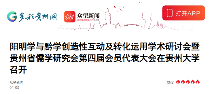 多彩贵州网·众望新闻讯(通讯员刘青衢)3月31日,“阳明学与黔学创造性互动及转化运用学术研讨会暨贵州省儒学研究会第四届会员代表大会”在贵州大学中国文化书院召开。本次研讨会由贵州省儒学研究会主办,江苏宏德文化出版基金会、贵州大学历史与民族文化学院、贵州大学中国文化书院协办。
