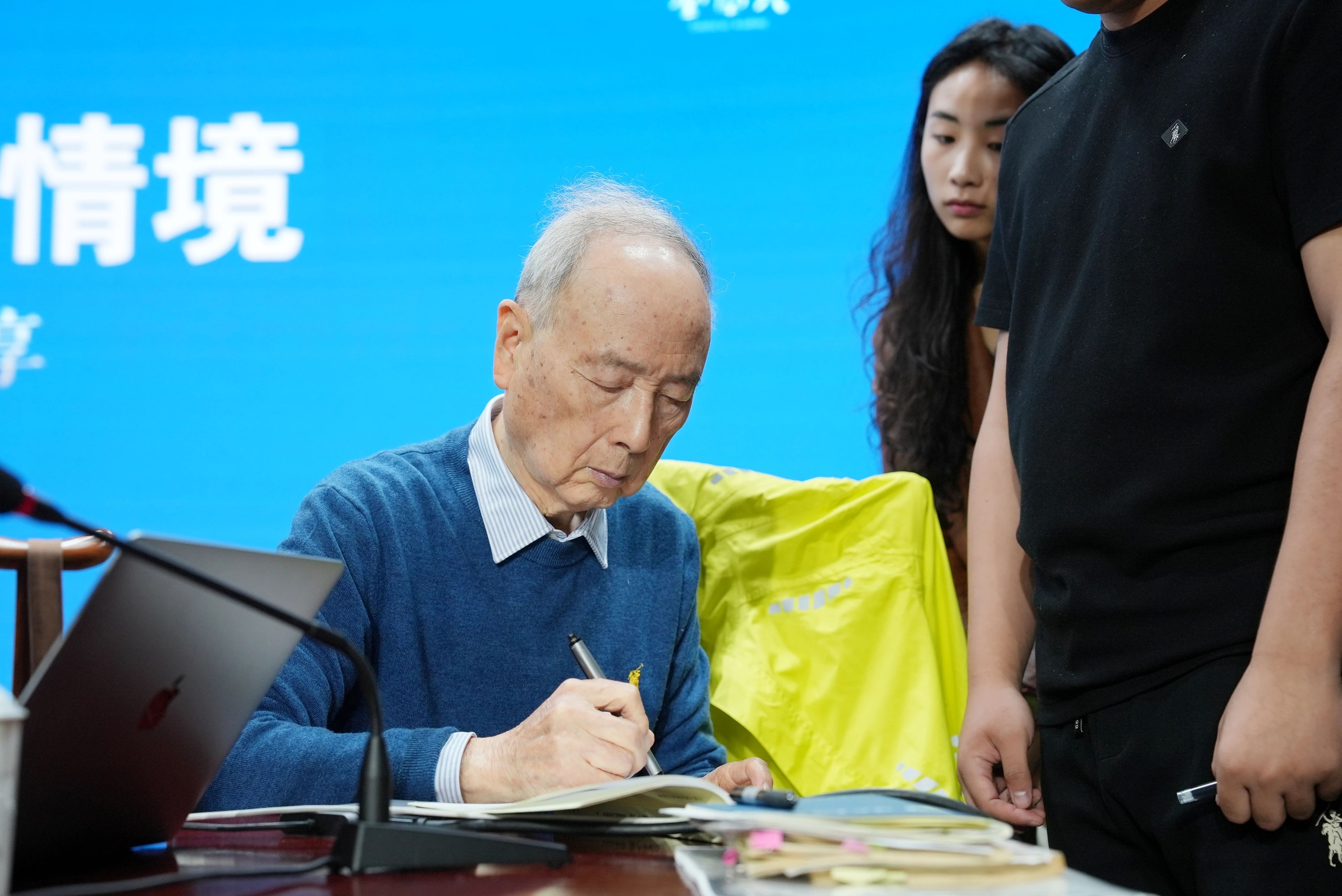 讲座开始时,年近九旬的陈鼓应先生就亲切地走到观众面前分享,这是他第三次来贵州。随后,他从尼采的存在主义开始说起,介绍了他从尼采到老庄的学思历程。同时,也分享了孩童时“摇头晃脑”背“四书”的经历,感叹儿时接受的儒家经典教育让他受益匪浅,为之后贯通中西、融合古今的学术视野打下了基础。