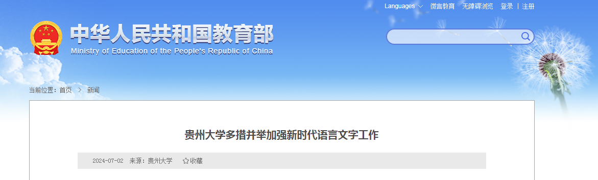 贵州大学深入学习贯彻党的二十大精神和习近平总书记关于语言文字工作的重要指示批示精神,认真落实党中央、国务院有关决策部署要求,紧紧围绕立德树人根本任务,聚焦高质量推广普及国家通用语言文字,将语言文字工作与人才培养、科学研究、社会服务、文化传承创新和国际交流与合作等有机融合,积极为建设教育强国和文化强国贡献力量。