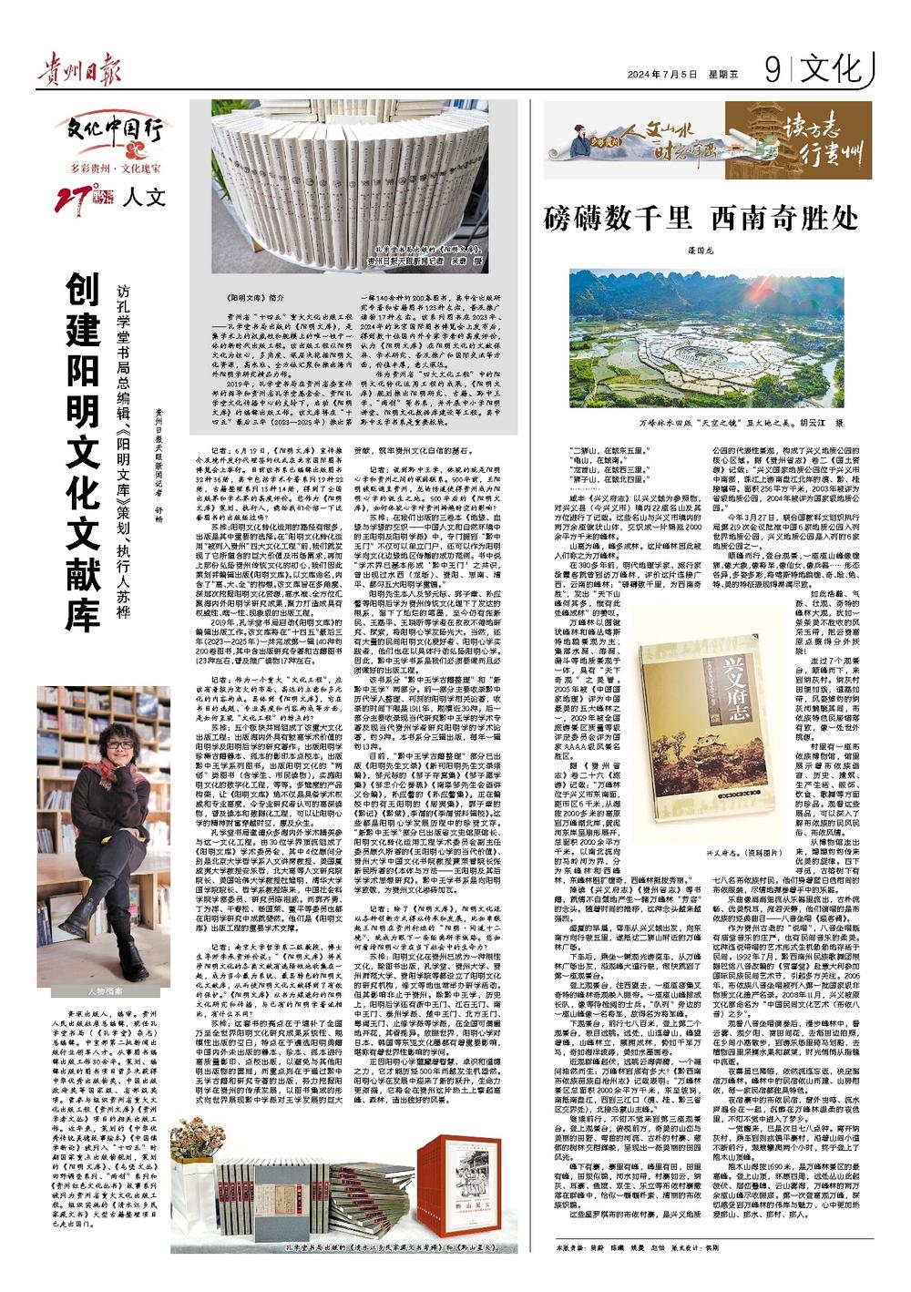 苏桦:五个板块共同组成了该重大文化出版工程:出版海内外具有较高学术价值的阳明学及阳明后学的研究著作;出版阳明学珍稀古籍善本、孤本的影印本点校本;出版黔中王学系列图书;出版阳明文化的“两创”类图书(含学生、市民读物);实施阳明文化的数字化工程,等等。多维度的产品构架,让《阳明文库》绝不仅是具备学术权威和专业高度,令专业研究者认可的高深读物,普及读本和数据化工程,可以让阳明心学的精神财富穿越时空,惠及众生。