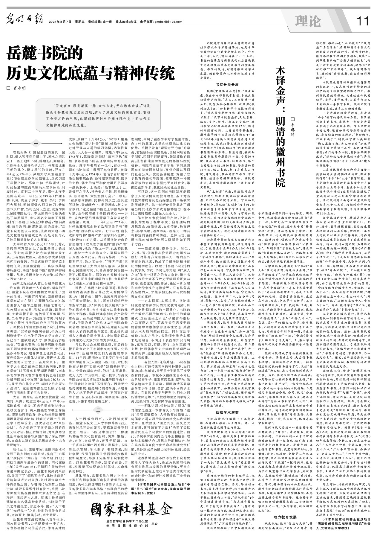 (作者:李琳琦,系国家社科基金重点项目“明清徽州书院文献整理与研究”负责人、安徽师范大学教授)