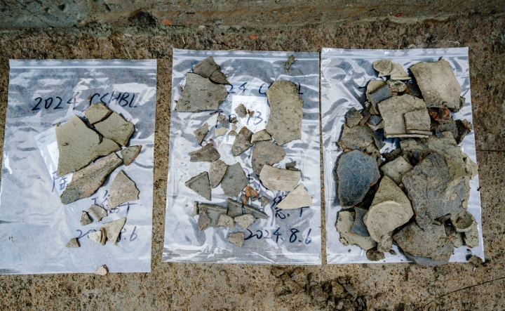 对于古蜀文明重要阶段的十二桥文化,地层和遗迹中出土物还是以破碎的陶片居多,在成都考古专家张文彦、李国等老师的精心指导下,队员们总是仔细地搜集好每一块陶片,填写好每一页标签,努力绘制好每一幅图纸,拍摄好每一帧图片,为复原古蜀先民们社会生活提供最全面的遗物和信息采集。