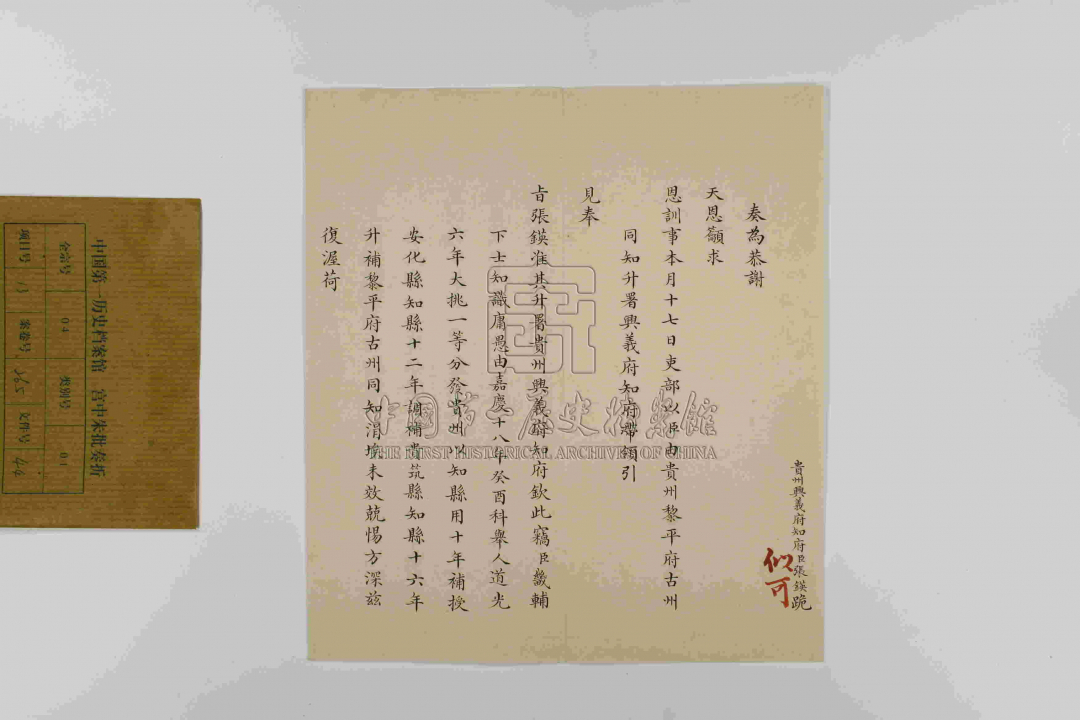 张锳出任兴义知府时上奏朝廷的奏折。(中国第一历史档案馆藏)