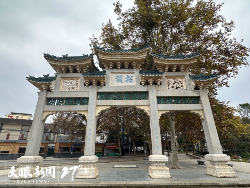 招堤中央的广场上,晚清中兴四大名臣之一的张之洞塑像耸立于此,孩提时代,张之洞曾随父张锳在这里生活。