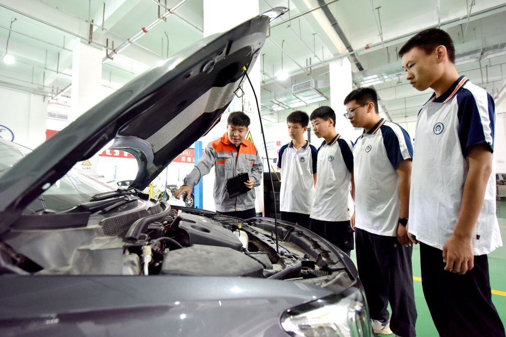 2024年6月7日,河北省邢台市威县职业技术教育中心教师在指导学生学习汽车维修技术。新华社记者王晓摄