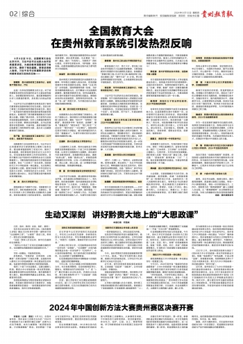 9月9日至10日,全国教育大会在北京召开,习近平总书记出席大会并发表重要讲话,为建设教育强国指明了前进方向、提供了根本遵循。谆谆话语催人奋进,习近平总书记的重要讲话在贵州教育系统引发热烈反响——