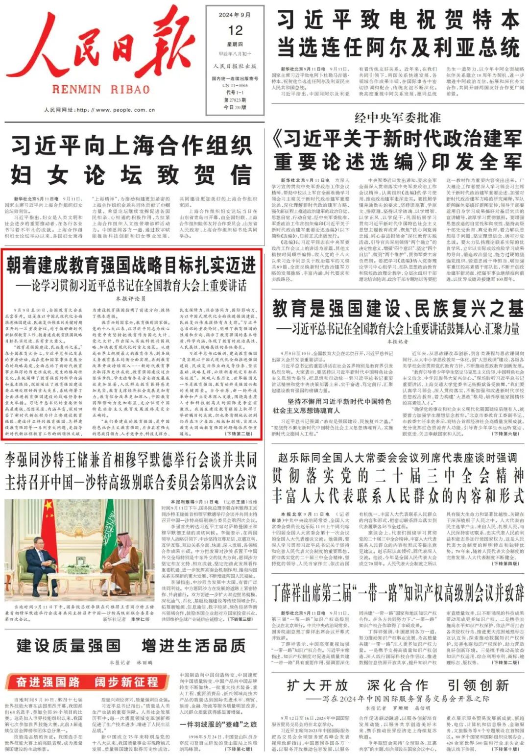 9月9日至10日,全国教育大会在北京召开。这是在以中国式现代化全面推进强国建设、民族复兴伟业的关键时期召开的一次重要会议,对于做好新时代新征程教育工作,朝着建成教育强国战略目标扎实迈进,具有重大意义。