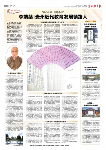 本报记者杨杰 综合天眼新闻、《中国近代教育奠基人李端棻》、人民政协网、方志贵阳、贵阳网报道