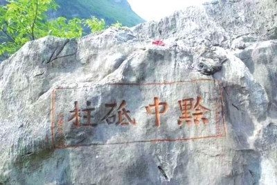 田秋在乌江巨石上书写下“黔中砥柱”四字。
