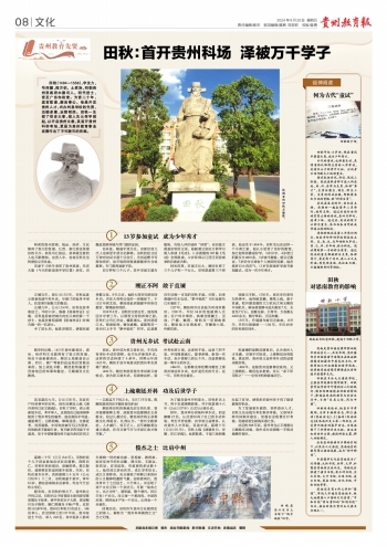 回望历史,田秋作为贵州文化教育史上的伟人,被称为“贵州科举教育之父”当之无愧。