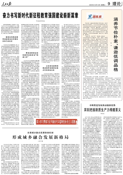 习近平总书记的重要讲话整体擘画教育强国战略图景,科学回答了为什么要建设教育强国、建设什么样的教育强国、怎样建设教育强国等一系列重大问题。新时代新征程,我们要牢牢把握教育的政治属性、人民属性、战略属性,深刻领会教育强国的“六大特质”,紧扣重点领域、关键环节,坚持系统、整体推进教育强国建设。