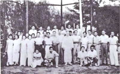 复旦新闻系学生与谢六逸先生合照。