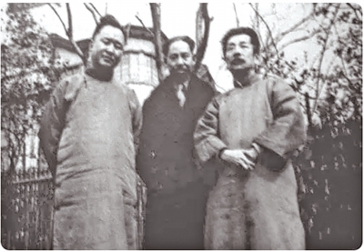 谢六逸(左一)和鲁迅合影。