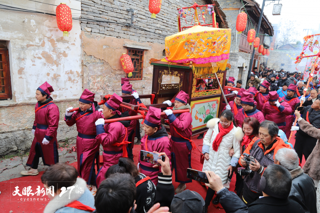 尤其在新春正月,许多屯堡村寨都会举行屯堡“抬亭子”(有的“抬汪公”、有的“抬玉皇”、有的“抬关公”等)传统民俗活动。作为屯堡地区特有的一项重要传统活动,“抬汪公”是屯堡人的一大盛事,人们在活动中祭拜恩祖、祈求来年风调雨顺。