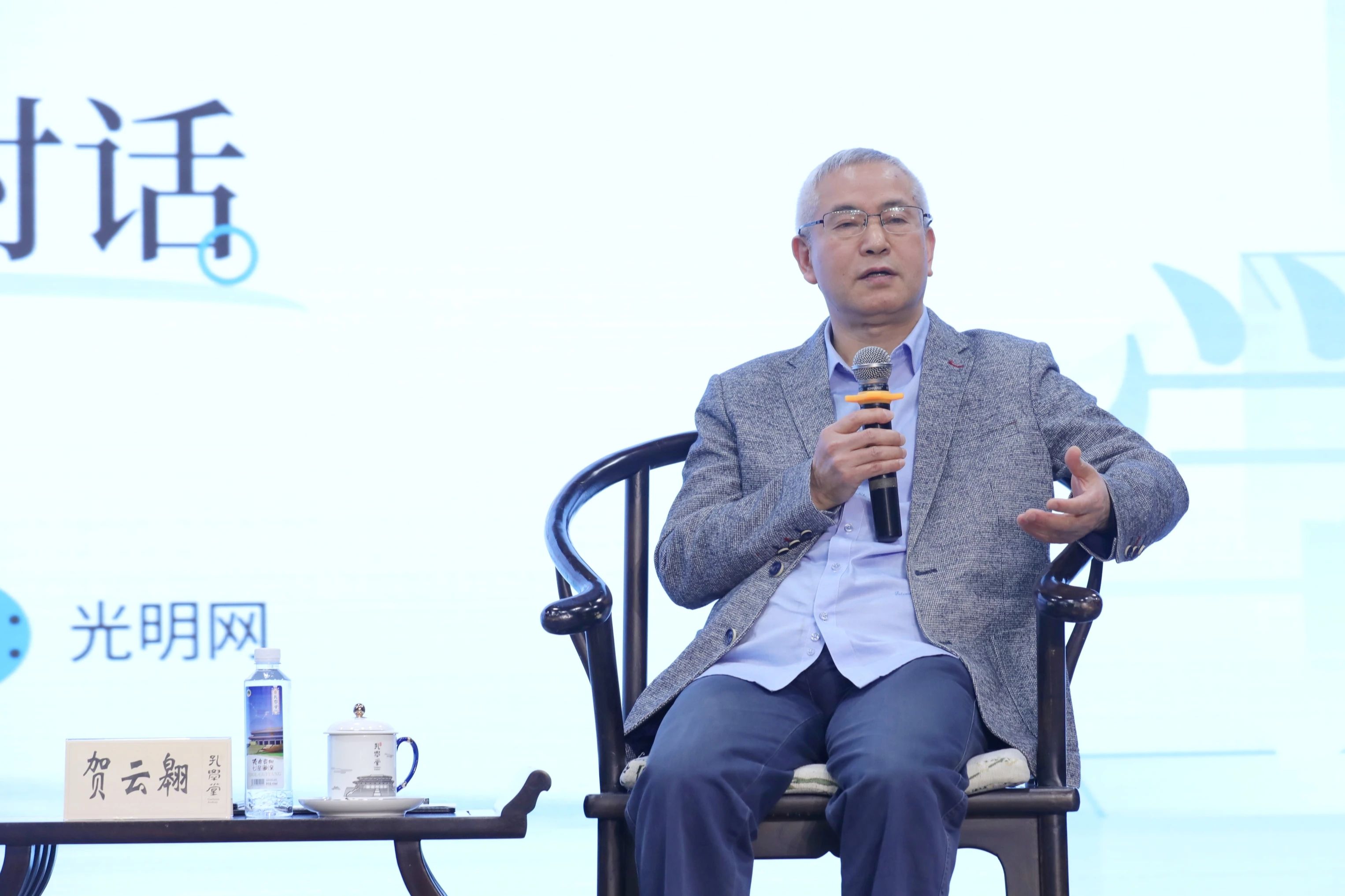 贺云翱教授从考古的角度,介绍了“何以为人?”。在他看来,地球人类具有同一个来源,他们虽然被分为蒙古人种、尼格罗人种、欧罗巴人种、澳大利亚人种等4大人种,但都是同一来源;人是平等的,虽然职业不同、收入不同、国别不同、民族不同,但是人都是平等的;人是有创造性的,每个人都是独特的,人与人之间的差异不是肉体上的而是文化上的。地球人家需要合作,合作才有分享、才有提升、才有和平、才有未来。贺云翱教授还从阳明心学的角度来观察人类发展的历程,他认为王阳明先生的“知行合一”十分重要,知在行中,行在知中,有了良知才有良识以及良行、良果。创造出世界上第一把石斧的人,有意识去打造石器是“知”,打造的过程就是“行”,石器的产生是人类的第一种文化的创造,这就是“果”。古代人类于一万年前后在地球上不同大河流域创造了第一种文明——农业文明,农业文明走过石器时代、青铜时代、铁器时代。人类在200多年前进入第二文明时代,也是机器时代,即人类进入了工业文明的状态,工业文明产生后走过机械化、电气化、自动化,当今到了智能化的时代。正是因为人类具有“知行合一”的文化创造特点,才能不断从一个历史阶段走向另一个历史阶段,不断攀登文明高峰,直到进入了智能化的时代。他认为正是人类具备“知行合一”的创新能力和特点,才能催生更高级的文明成就,就是把人心中的“良心”“良知”转换成“良行”和“良果”,才能创造更幸福的生活、更和平的世界,也只有这样的创造才能够满足人的生存需求和价值诉求。